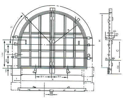 說明:斜風(fēng)井防爆門標準設(shè)計適用于最大負壓3500Pa抽出式通風(fēng)機。